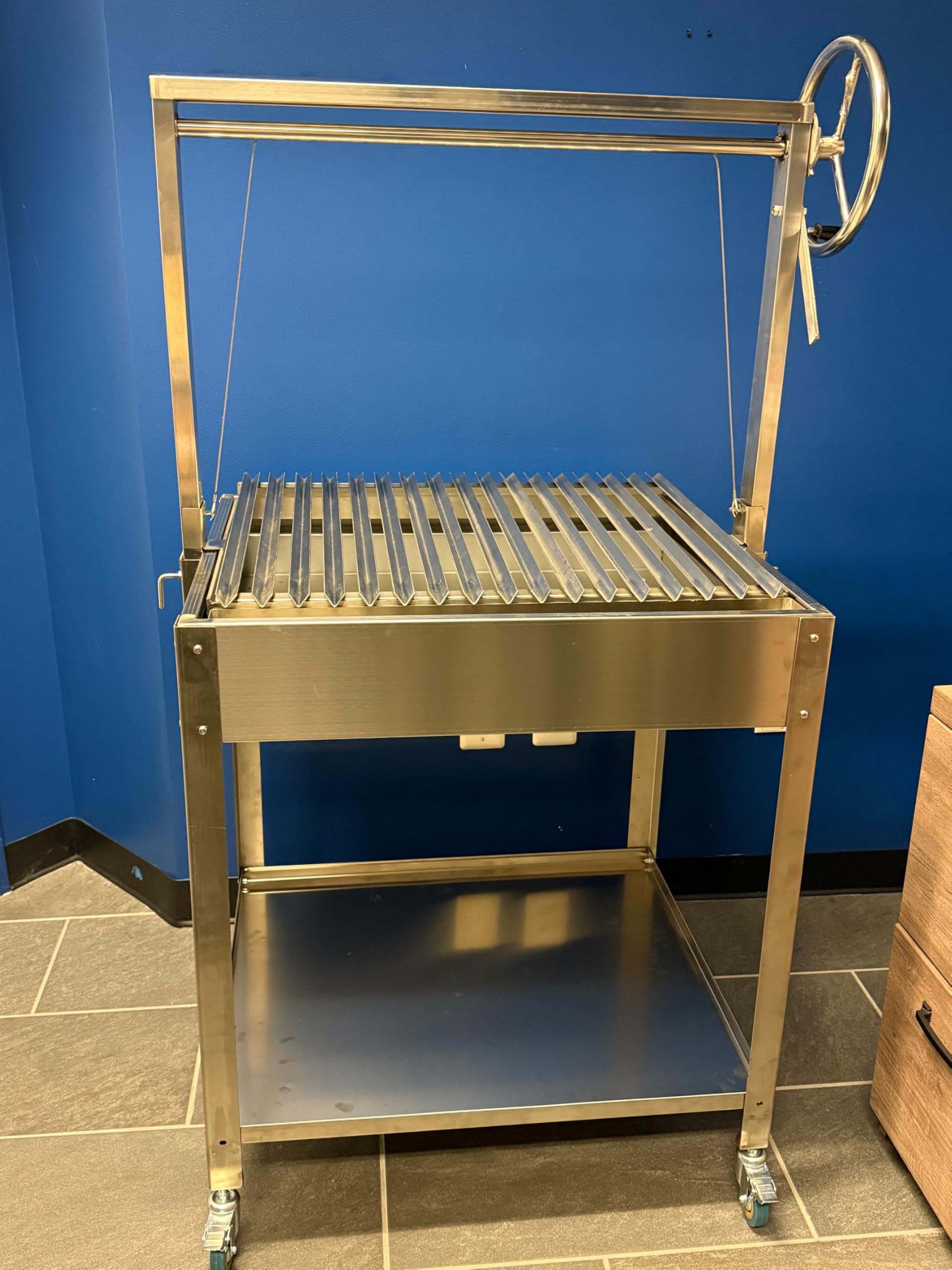 - High quality Stainless Steel V-grate Adjustable Grill with cart and locking wheels